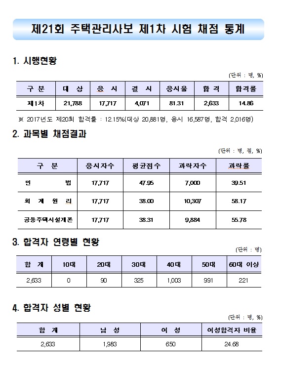 2018년도 1차 주택관리사보 시험 채점 통계