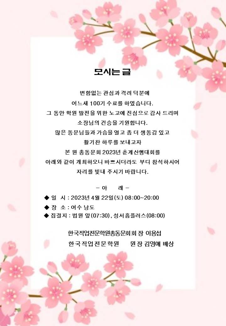 2023년 총동문회 춘계산행대회 안내